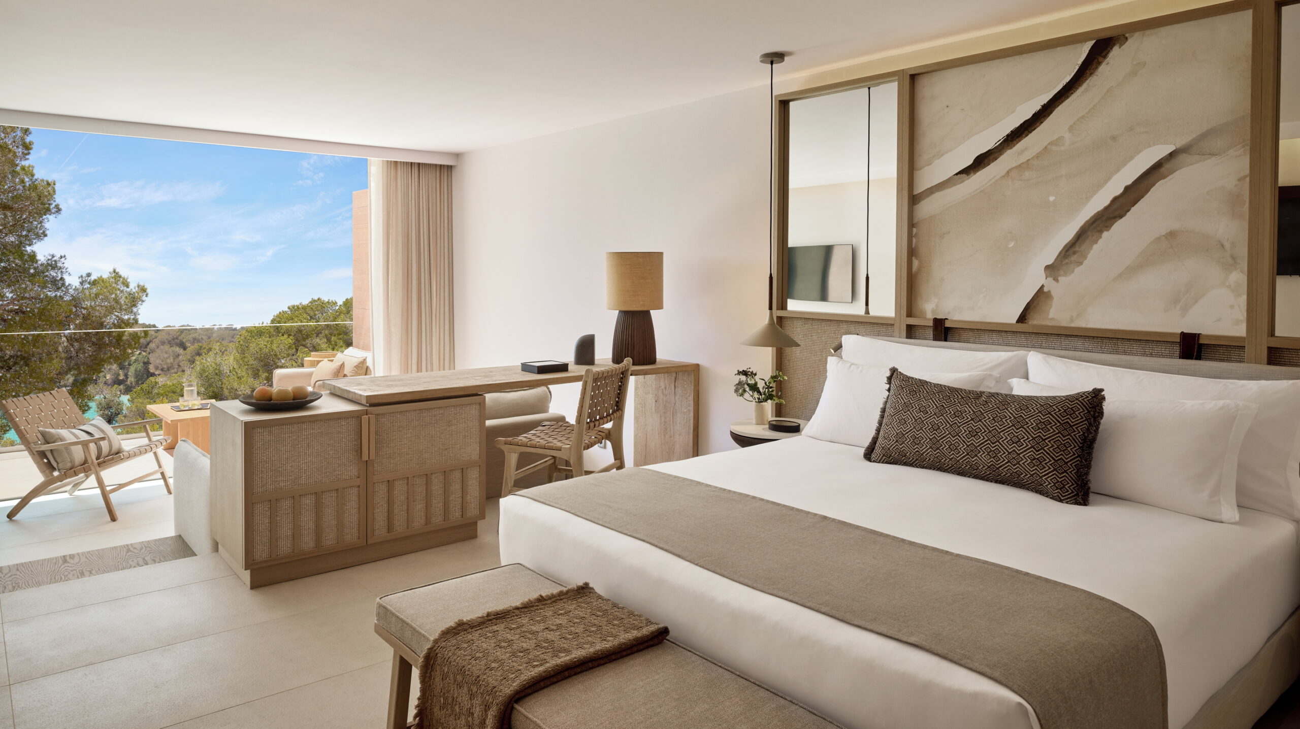Relájate en una suite elegante con impresionantes vistas al mar y acceso directo a la playa.
